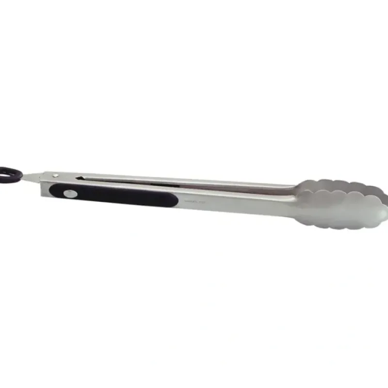 If you or anybody you know grills. then you know tongs are a must-have item. Our tongs are made from stainless steel for strength and durability. and feature polypropylene grips for added comfort. The tongs lock shut for easy storage and also have a hoop on the end of the handle that is perfect to hang up while not it use. Be sure to have these nearby anytime you are grilling or frying a meal.