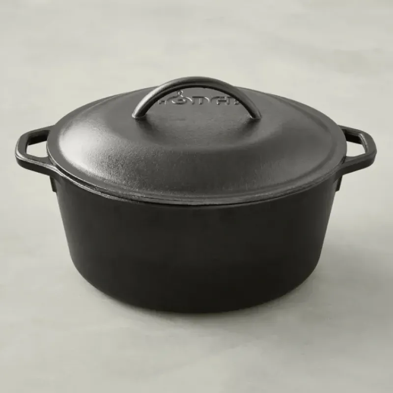 America’s oldest family-owned cookware foundry. Lodge has been forging cast-iron pots and pans since 1896. Cast iron provides exceptionally even heating. so foods sear. brown and cook beautifully. Preseasoned and ready to use. this versatile Dutch oven is perfect for making slow-simmered batches of chili and stew. baking “no-knead” bread or braising pot roast.