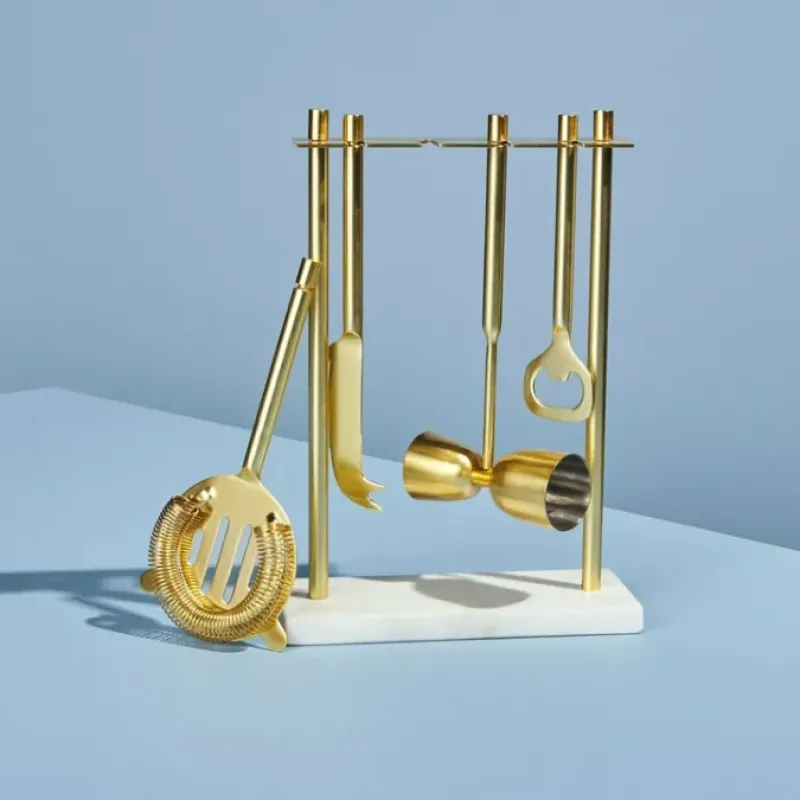 - Set includes 4 hanging bar tools marble stand (as pictured)