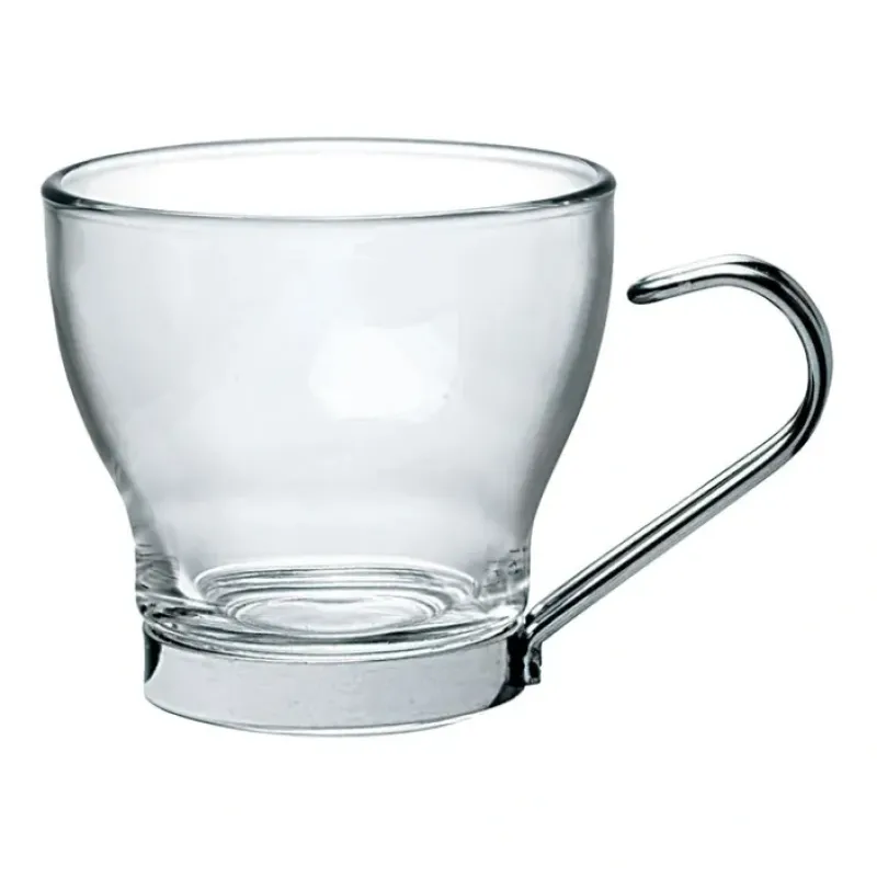 Each beautiful Bormioli Rocco Oslo Espresso Glass has a modern clear glass design with an attaching stainless steel handle. The metal handles easily separates from the glass for easy washing and handling. This espresso glass is made from tempered glass for durability and hold up to 3.5 ounces. The Oslo Espresso Glasses are dishwasher safe.