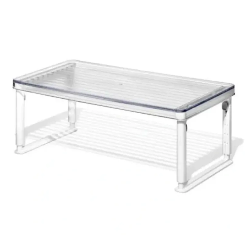 The OXO Good Grips Fridge Organization System is an extensive collection of bins. drawers. shelves. risers and accessories to help streamline your refrigerator. With five adjustable heights. our Adjustable Refrigerator Shelf Riser maximizes vertical space to add storage to any refrigerator. Produce. condiments and leftovers can be nestled on top of the shelf or tucked away below. Risers also help to elevate smaller items. such as jars and yogurt containers to keep them in sight. helping you keep track of inventory and expiration dates. The Shelf Riser has a 25 lb weight capacity and the shelf expands from 5.91 in to 8.68 in/15 cm to 22 cm.