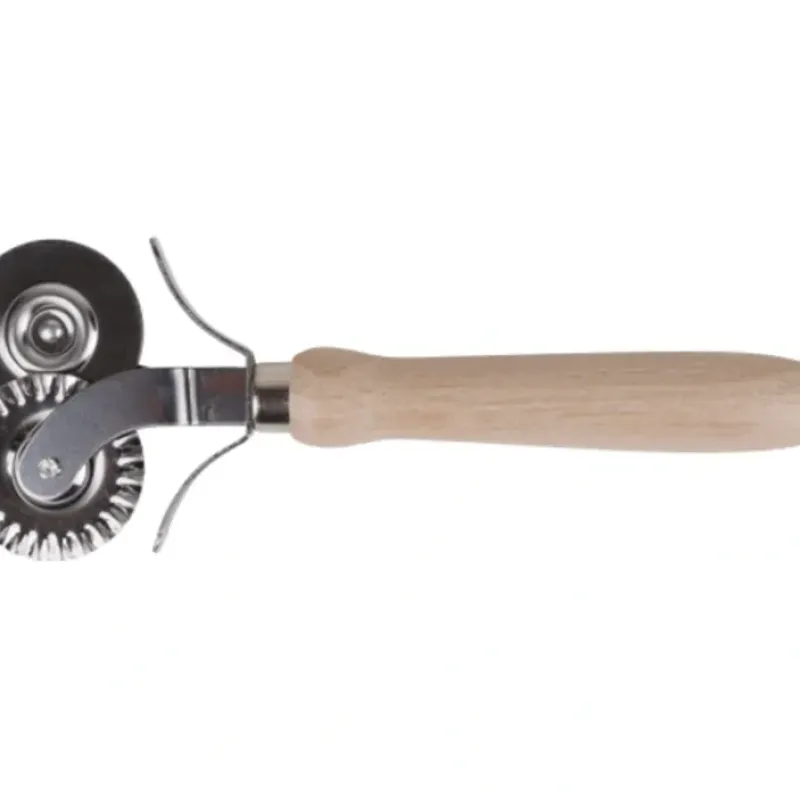 Double pastry wheel with one smooth and one wavy decorative cut. Cuts ravioli and Maultaschen. but also marzipan. fondant or cookie dough.