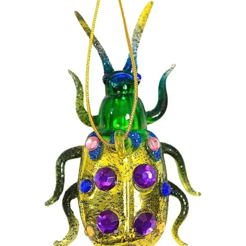 - This Beetle Ornament Is So Colorful. Glittered. And Color Jewels All Giving It A Color Theme.