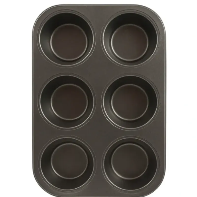 Save a trip to the local bakery by whipping up a batch of Jumbo sized muffins or cupcakes at home using the Nonstick 6 Cup Jumbo Muffin and Cupcake Pan. This versatile pan is excellent for baking jumbo-sized portions of food such as muffins. cupcakes. breakfast quiche. hash-brown cups. and more. You can surprise a loved one with home-baked birthday cupcakes. and experience the satisfaction of knowing exactly what went into them. The 6 cup size pan is perfect for a small batch of delicious baked treats.