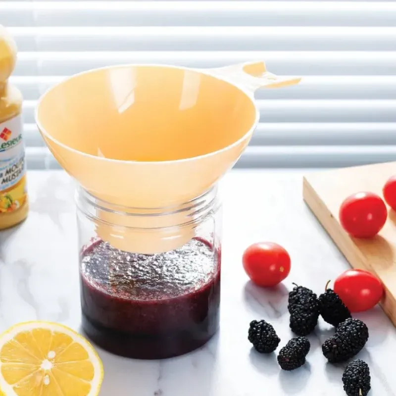 Perfect for the home canner. This Wide Mouth Canning Funnel from Fox Run is constructed of durable plastic. It features a 4.75-inch top opening with a 2.25-inch stem. The wide mouth makes it easier to fit your fresh fruits and vegetables into jars for home canning. Great for transferring both liquids and solids between containers and large enough for sugar. flour. and grains to flow through. Make canning fresh fruits and vegetables from your garden or local produce stands easier than ever!