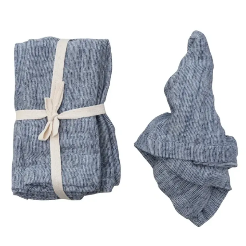 Catalog Name: 18″ Square Woven Cotton Linen Slub Napkins. Blue. Set of 4