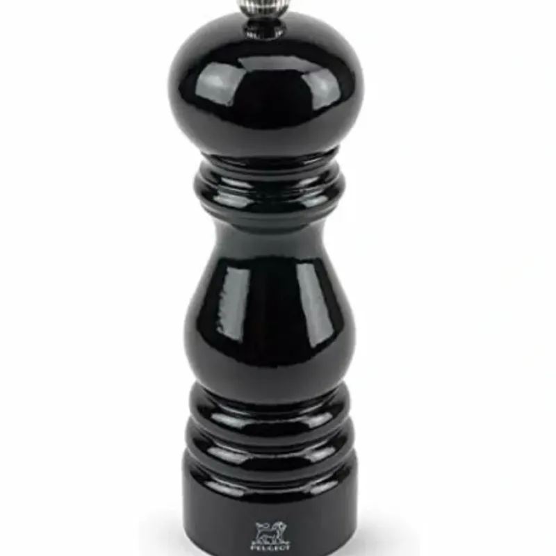 Famous throughout the world. the Paris model is the undisputed benchmark for pepper mills. Its classic silhouette in wood enhanced by its black gloss finish gives it a highly contemporary touch. This Paris u’Select pepper mill is stylish and elegant. Compact. it fits in easily on your table. Its patented grinding adjustment system is used for precise selection of the fineness of the pepper as required. There are 6 possible settings. Made in France. this manual pepper mill is equipped with the Peugeot mechanism in steel. which comes with a lifetime guarantee. With its u’Select patented adjustment system and its black gloss finish. the Paris 12 cm pepper mill brings a magnificent touch to your table. Two-stage pepper mechanism – first cracks then grinds peppercorns – ensures the most flavor and aroma is released from the pepper Mechanism constructed of case-hardened steel – virtually indestructable Mechanism fully adjustable. producing grinds ranging from very coarse to powdery Mill body made of beechwood Hand wipe with soft cloth