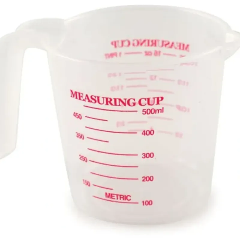 Standard and metric equivalents. Made of high quality. food safe plastic. Clear plastic for easy viewing. Large. sturdy handle and pour spout for easy pouring. Dishwasher safe.