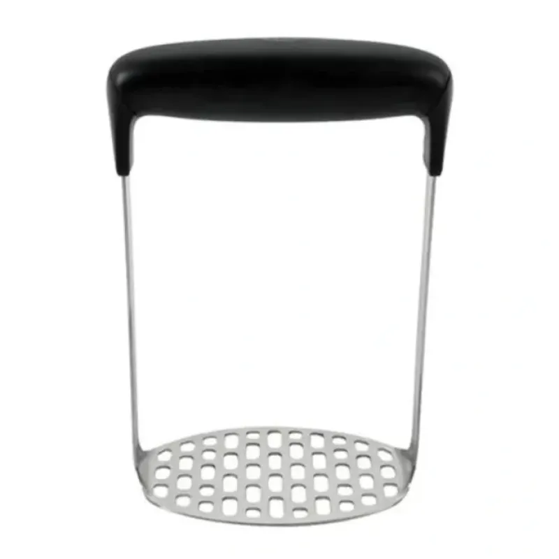 This innovative Potato Masher puts less pressure on your hands while churning out smooth. soft mashed potatoes. A broad. soft. horizontal handle lets you press straight down as it absorbs pressure. A fine-grid. stainless steel mashing plate yields smooth mashed potatoes with no lumps.
