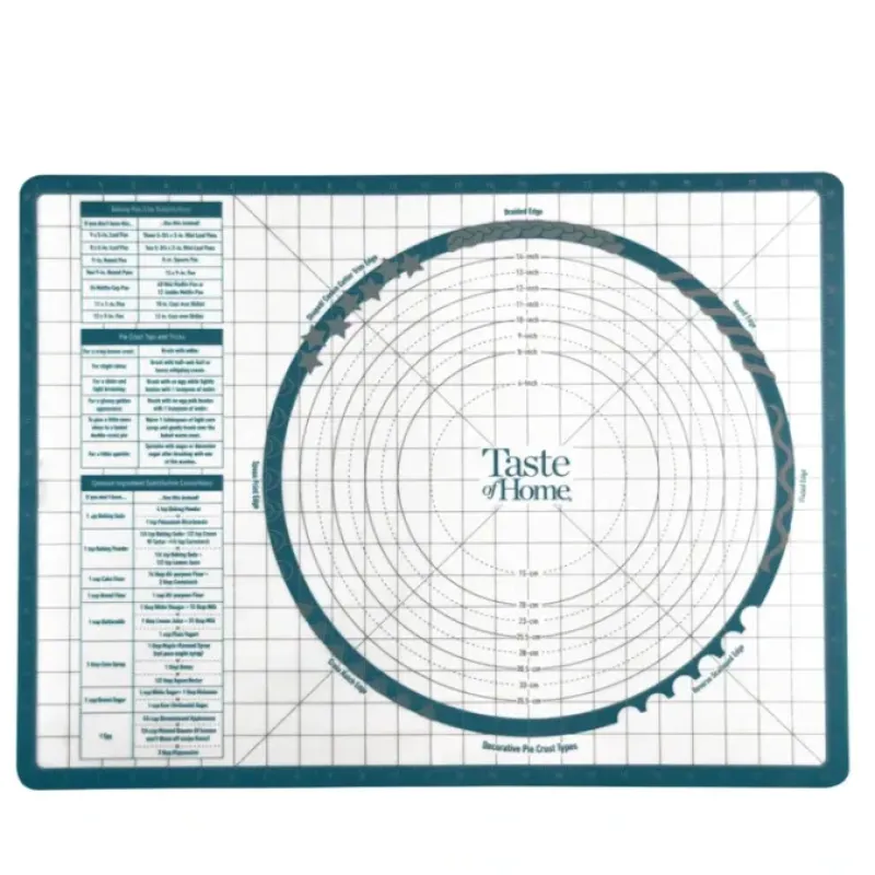 Prepare delectable pastries using the Taste of Home Silicone Pastry Mat and protect your countertops in your baking adventures! Use this non-slip. silicone kitchen wonder to prep pastries. roll out dough. measure a perfectly sized pie crust and adorn your pie crusts with darling decorations using the decorative pie crust guide! Create a pie crust your loved ones will fawn over. using the printed tips and tricks chart. In a pinch. the baking substitutions list is always handy to help you accomplish your baking tasks with commonly found ingredients.