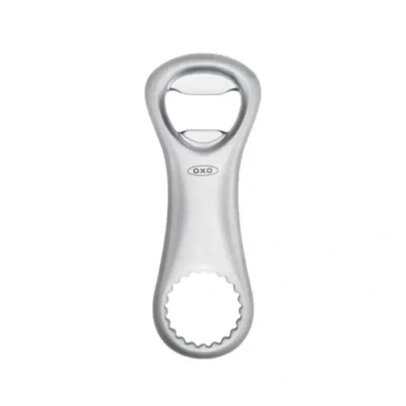 The Die-Cast Bottle Opener opens pop-top and twist-top beer and soda bottles with ease. The pop-top side opens metal caps with a flick of the wrist. and the twist-top side grips onto metal bottle cap teeth for effortless opening. With a non-slip. comfortable touchpoint great for opening lots of glass bottles. and sturdy die-cast zinc to last a lifetime of parties.