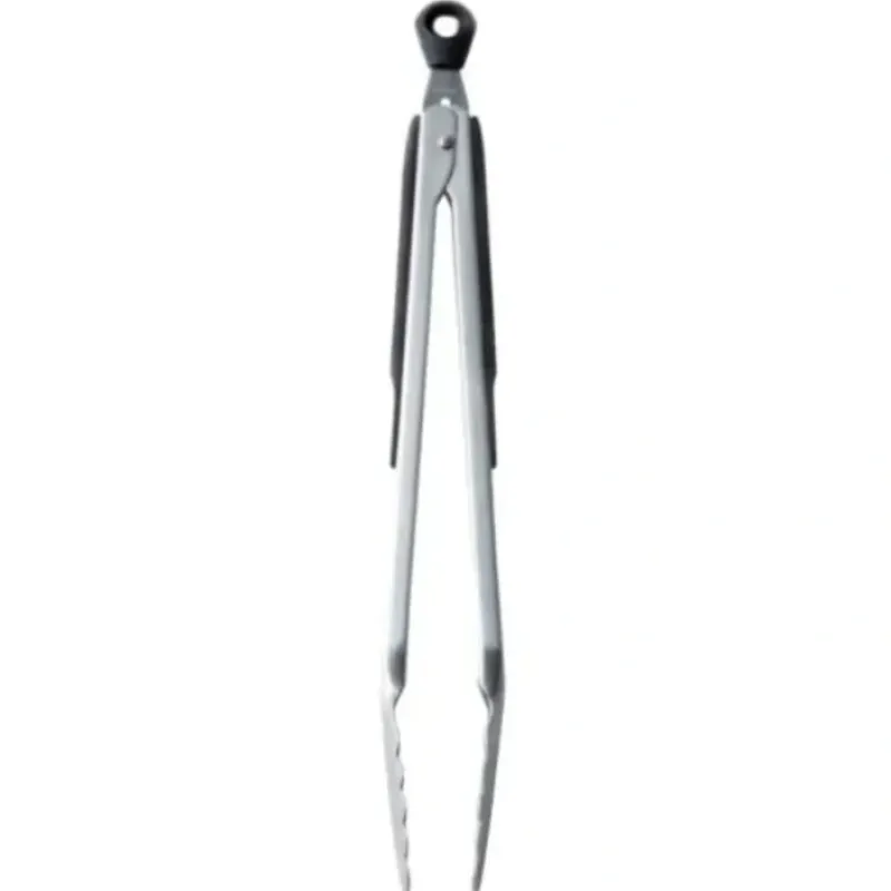 Our tongs feature brushed stainless steel with soft. non-slip handles and comfortable thumb rests. Easily lock in the closed position for convenient storage. The large pull-tab for locking also doubles as a hole for hanging. Also available in 9-inch and 16-inch sizes.