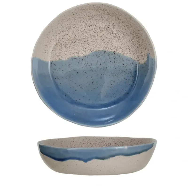 8-1/2″ Round x 2″H Stoneware Bowl. Reactive Crackle Glaze. Blue Cream Color Speckled (Each One Will Vary)