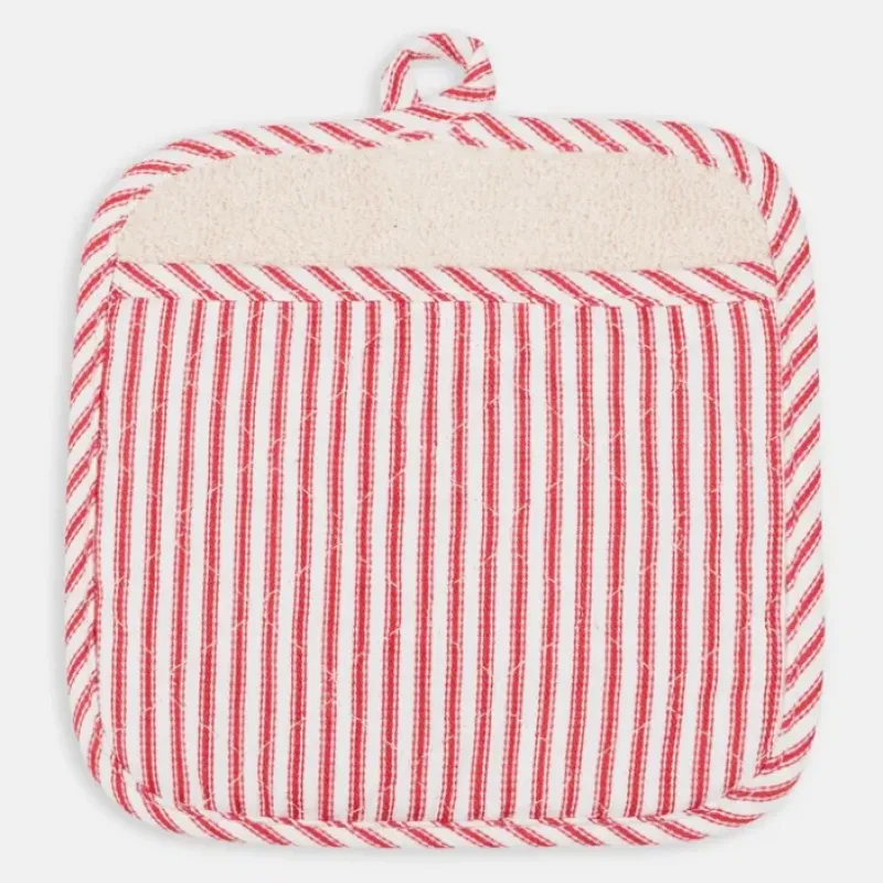 Our metro stripe pot holders are stylish. comfortable. and safe. Available in a variety of striking colors. these pot mitts are perfect for handling almost anything that can go in the oven. Convenient loop for hanging on a hook.