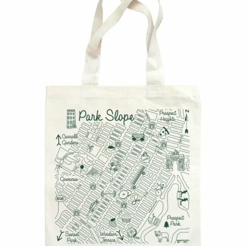 This classic tote bag. featuring the neighborhood Park Slope in Brooklyn. New York. makes the perfect gift or souvenir and is great for toting around groceries and all your daily necessities.