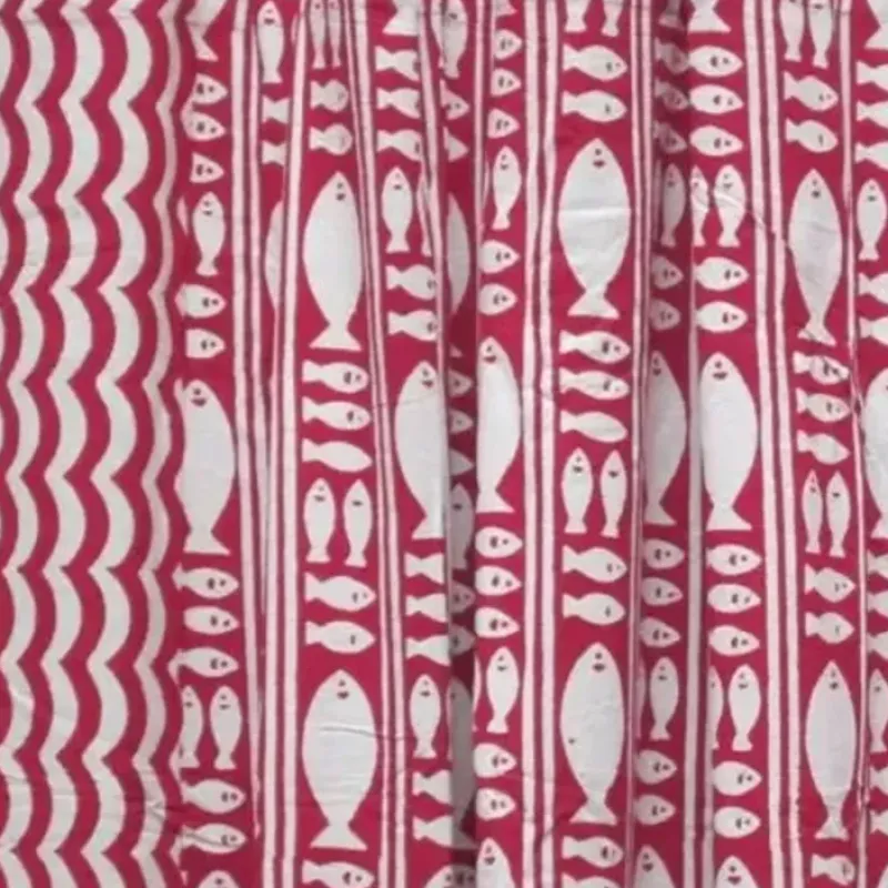 Handblock printed shower curtain. 70 X 72″ 100% cotton. Machine Wash Cold. Gentle Cycle. Do Not Bleach. Air Dry.