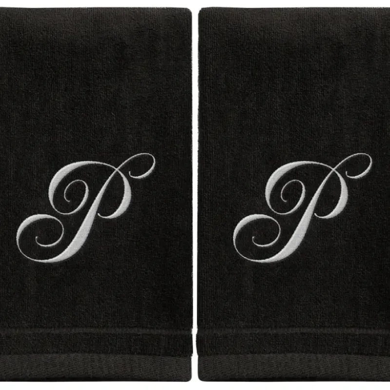 DescriptionFG216126Black Monogrammed Towel – White Embroidered – Initial P