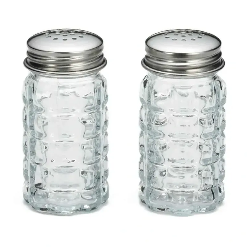 Classic salt and pepper shakers help tidy up your seasoning options next to the stove or on the table. Durable. rust-resistant tops.Dishwasher SafeClear Glass. Stainless Steel TopsPkg Dim: 4 x 2 x 4″