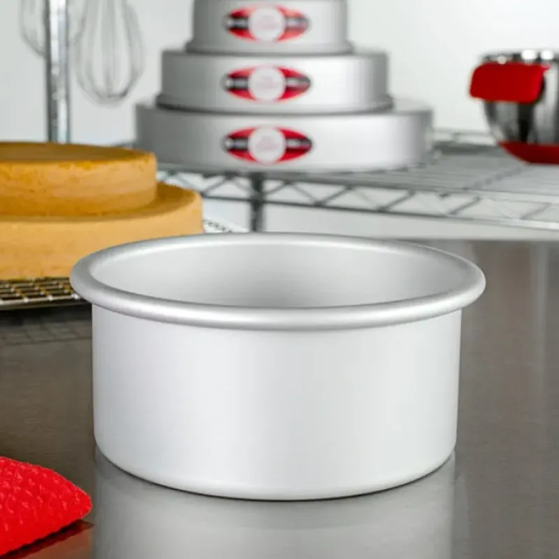 Create your signature wedding. birthday. and holiday cakes with the durable Fat Daddio’s round anodized aluminum straight sided cake cake / deep dish pizza pan. Made of sturdy 16-gauge anodized aluminum. this pan is built to last through daily use in your commercial establishment. By reflecting heat. rather than absorbing heat. ProSeries cake pans reach baking temperatures quickly. Even heating allows for the best possible rise and once out of the oven. they cool quickly preventing over-baking and drying out of the cake. With this Fat Daddio’s cake pan. you will get consistent perfectly baked cakes every time!