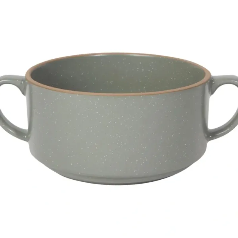 In muted. neutral tones and with two handles. these bowls turn the heat down on your hands. They also neatly stack together for easy storage.