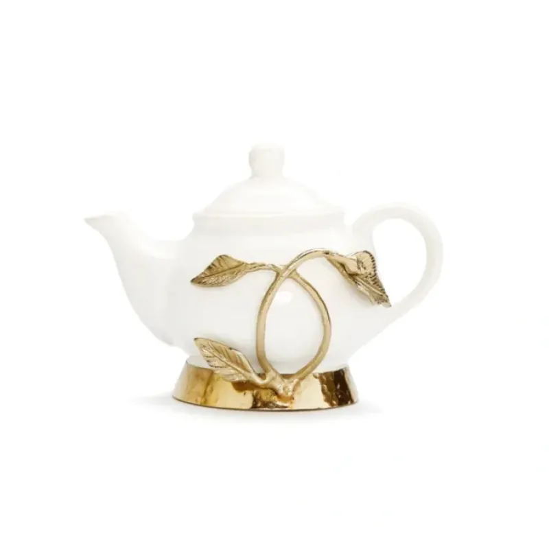 MF548866TK2438 White Tea Kettle W/ Leaf Design Ornament