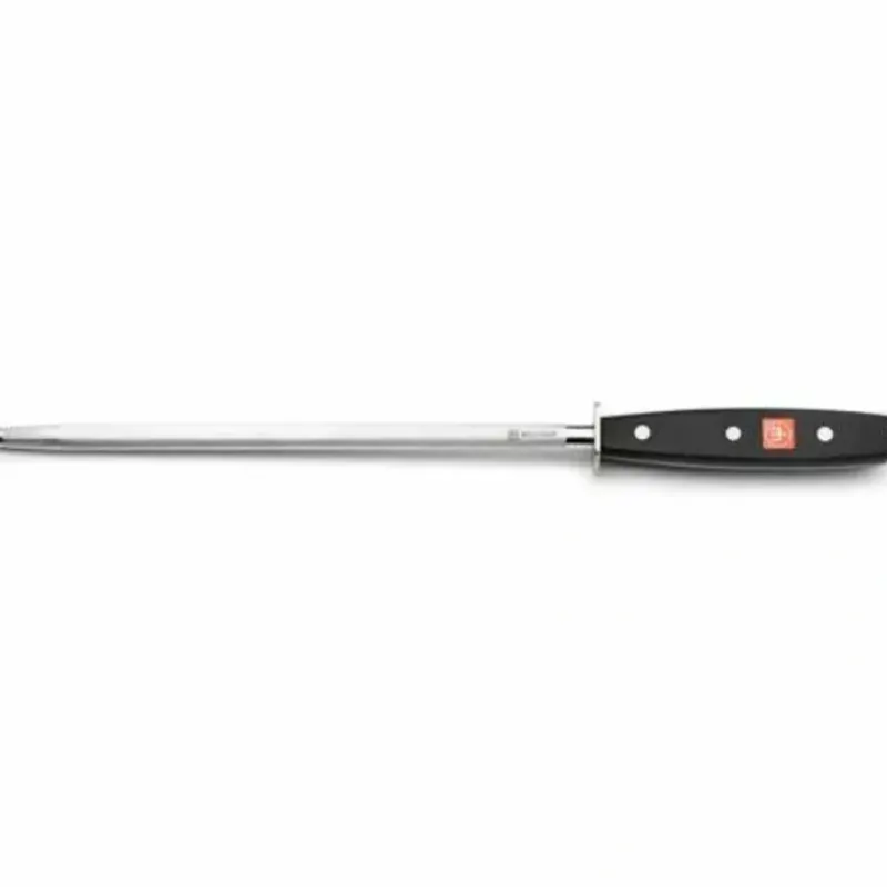 Features traditional triple rivet style handles with full tang. With regualr use any knife will eventually lose it’s “bite”. Every knife edge has many. very fine “teeth”which can bend to both side of the blade after a certain time of cutting on hard surface. Using a Wusthof steel will realign these teeth and remove any burrsalong the edge. It is suggested that you use a steel before or after everytime you use a knife.