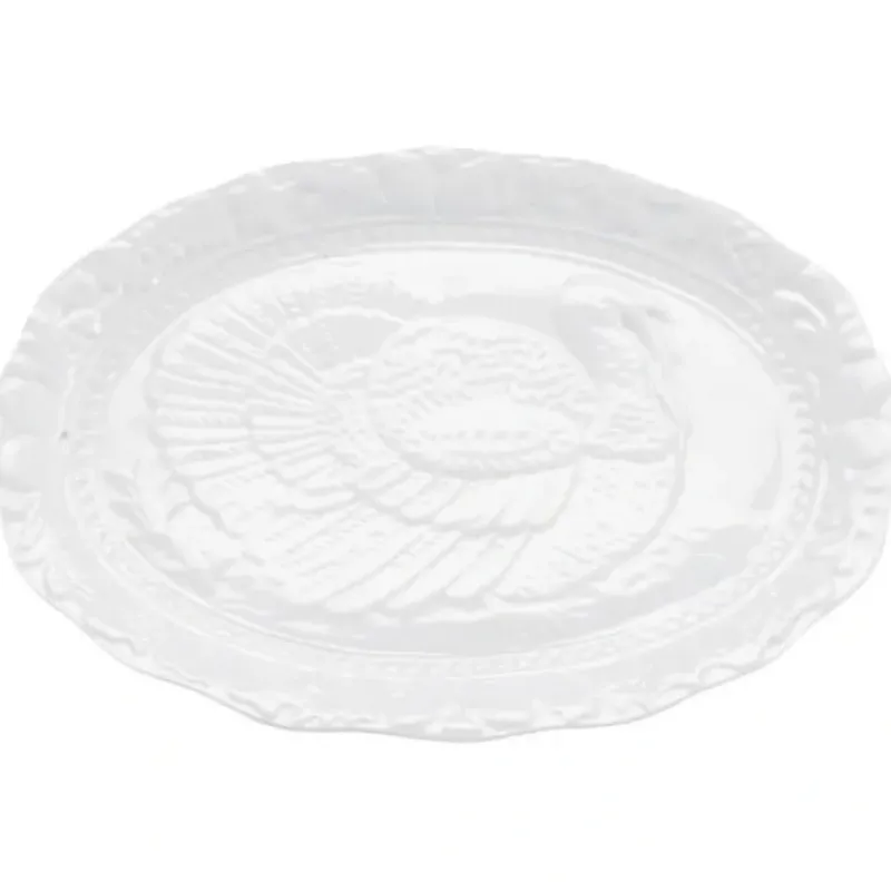- Embossed turkey design with scalloped edges for an elegant holiday presentation; ample capacity easily serves large gatherings with family and friends