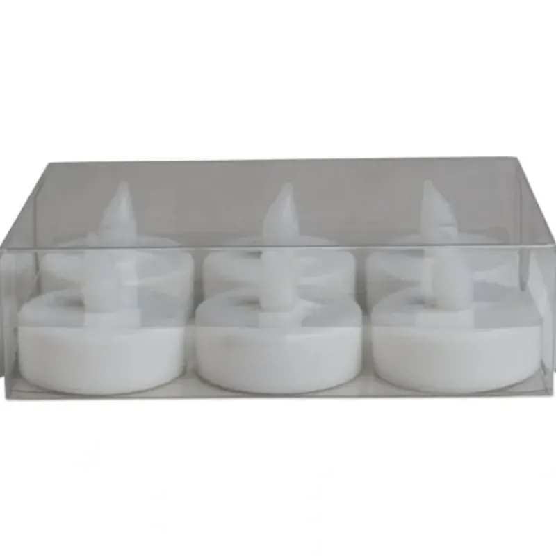 set the mood with worry-free candlelight. each led tealight candle is made of plastic—just what you need for a realistic. flameless way to illuminate areas of your home. an attractive alternative to traditional candles. timeless packaged sets in acetate boxes. on/off switch. requires 1 button battery. included.